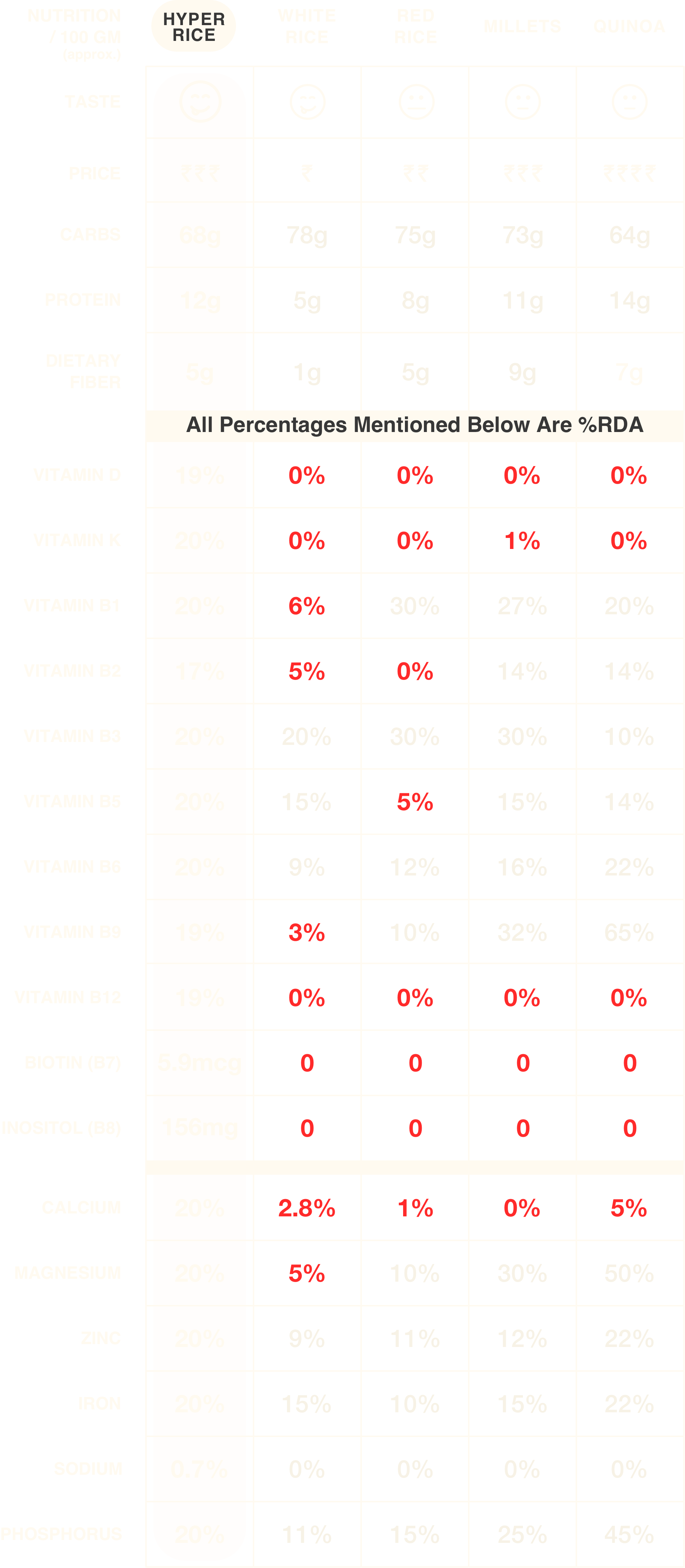 Though Red rice is healthier than regular white rice, it does not provide even 50% of nutrition of Hyper White Rice.