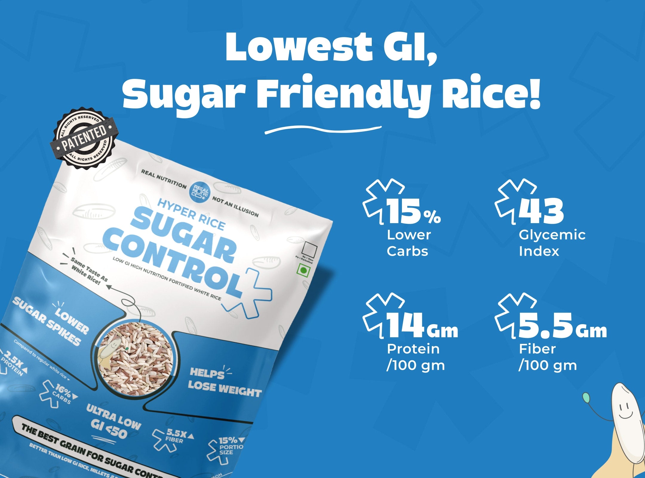 The most diabetic friendly rice! Lower blood sugar spike than brown rice, millets and regular low GI rice.